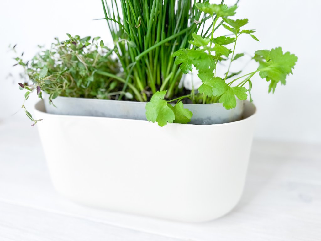 Krásné minimalistické samozavlažovací květináče v barvě slonové kosti. Vhodné pro pokojové květiny a bylinky. Dostupné ve dvou velikostech. Květináče mají hladinoměr pro kontrolu přelití.